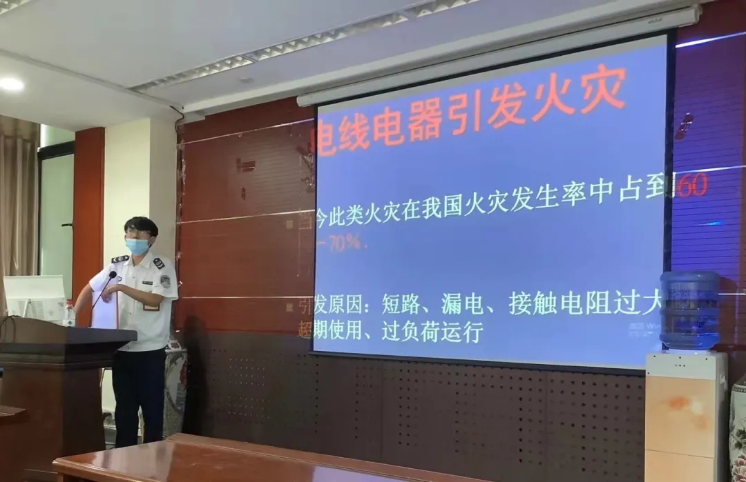 马教官通过近年来真实发生的消防案例,结合自身丰富的消防安全知识,通过视频、图文等形式,生动形象地为大家讲解了天然气使用安全、电线电器安全知识,并向师生科普了消防安全常识。